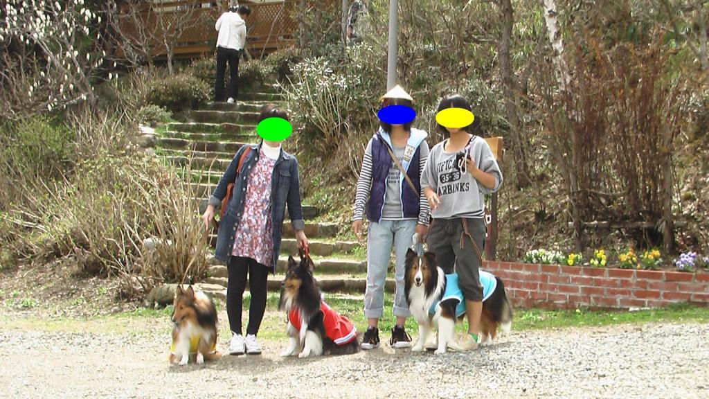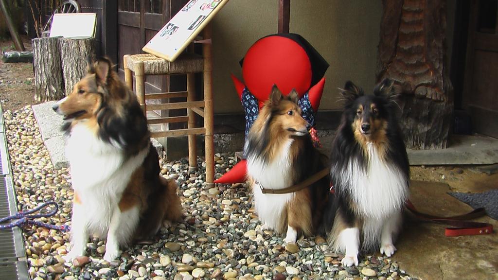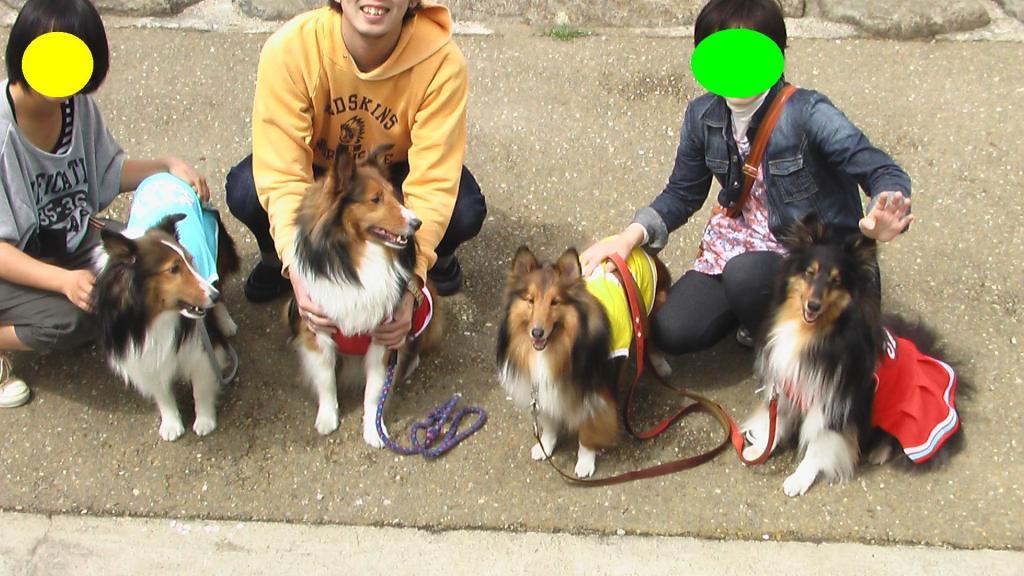 記念撮影しとったら、横浜からのシェルティ×2と地元シェルティ×1と出合ったんや